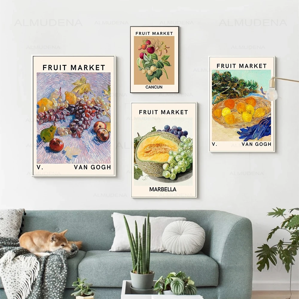 Van Gogh Fruit Market Poster Marbella Canvas Painting Abstract Grape Cantaloupe Wall Art Print Pictures For Living Room Decor